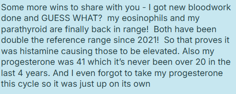“Another win to share with you. I got my period this morning and didn’t even know it was coming!! I have zero cramps, no cravings and don’t even need Advil. Also, for the first time in years, my skin didn’t break out at all before my period.”